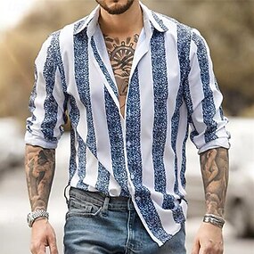 Voor heren Meetkundig Lijn Polo Korte mouw Poloshirt Overhemden met kraag Zakelijk informeel Buiten Sportkleding Alledaagse kleding Zak 3D-afdrukken Knop Zomer blauw Zwart en Wit Zwart