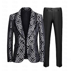 Retro vintage Jaren '80 Smoking Pakken en blazers Blazer met reverskraag Bruidsjonkers Jacquard Strijkijzer Kostuum Voor heren Maskerade Bruiloft Bruiloft gast Halloween Volwassenen Jas Broeken
