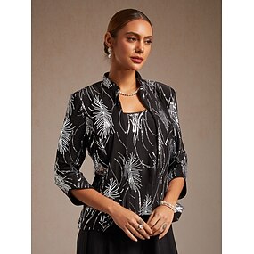 Dames Blouse Geklede topjes Elegant Stijlvol 3/4 mouw Mandarijn Kraag Normale tops Werk Bruiloft gast Formele kleding Zwart Herfst Winter
