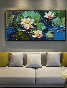 handgemaakte handgeschilderde olieverf kunst aan de muur blauwe bloemen woondecoratie decor gerold canvas geen frame niet uitgerekt
