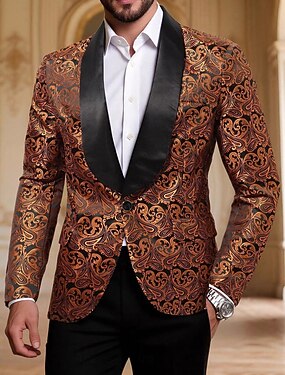 Voor heren Blazerjack Blazer Inkeping kraag Modieus Feest Klassiek Bloemig Blazer Zilver Goud Standaard pasvorm Single Breasted een knoops