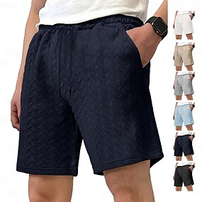 Voor heren Zomer korte broeken Strandshorts Casual korte broek Gestructureerde shorts Jacquard Trekkoord Elastische taille Effen Kleur Comfort Knielengte Dagelijks Buiten Streetwear Vakantie Modieus