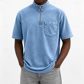 Voor heren T-shirt Gebreid T-shirt Korte mouw V-hals Zomer Effen Kleur Modieus Lichtgewicht Basic Netstof Gebreid Casual Vakantie Straat Zwart Paars Groen Top T-shirt voor mannen