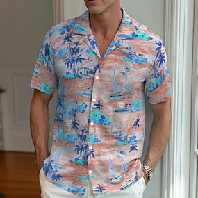 Voor heren Kokosnootboom Tropische planten Bloemen Overhemd Cubaans overhemd Hawaiiaans overhemd Korte mouw Hawaii Vakantie Feestdagen Strand Kleding Zomer Lente Overhemd met kampkraag 3D-afdrukken