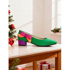 Groene pumps voor dames met kleurrijke strik – stijlvolle feestschoenen, perfect voor Kerstmis, Nieuwjaar en formele gelegenheden
