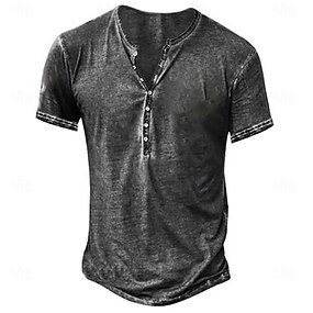 Voor heren Henley-shirt T-shirt Shirt met lange mouwen Korte mouw Effen Vintage Modieus Basic Kledingstuk geverfd gewassen Henley Vakantie Straat Uitgaan Zomer Donker-Bruin Donker Grijs Licht Grijs