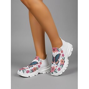 Roze sneakers voor dames met vlinder- en bloemenprint, ademende gebreide platform instapschoenen, comfortabele casual wandelschoenen voor dagelijks gebruik. & &kleding die de hele dag gedragen kan