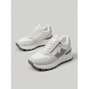 Dames sneakers met een chunky design in wit en grijs - stijlvolle platform dad shoes met ritssluiting aan de zijkant, perfect voor dagelijks gebruik, casual werk en stedelijke wandelingen.