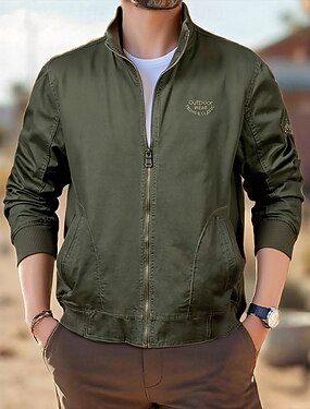 Voor heren Overhemdjasje Winterjack Effen Vakantie Alledaagse kleding Zwart Leger Groen Lange mouw Opstaand Herfst Winter Kleding Rits omhoog