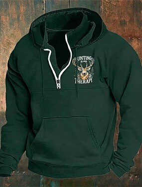 Voor heren Trui met capuchon Wijn Marineblauw Groen Khaki Licht Grijs Capuchon Eland Voorvak Kwart ritssluiting Dagelijks Feestdagen Uitgaan Polyester Streetwear Casual Bavarian Herfst Winter Kleding