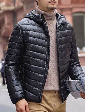Voor heren Winterjas Pufferjas Gewatteerde jas Zak Polyester Vakantie Alledaagse kleding Afspraakje Normaal Modieus Casual Comfortabel Thermisch Warm Winter Effen / effen kleur Zilver Zwart