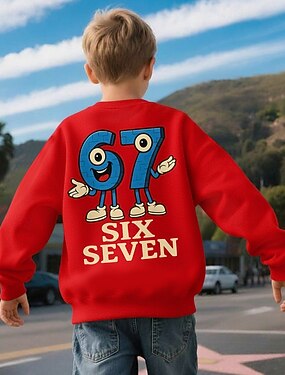 Uniseks Jongens 3D Grafisch Grappige Slang 67 Sweatshirt Pullover Lange mouw 3D-afdrukken Lente Herfst Actief Modieus Streetwear Kinderen 4-12 jaar Strakke ronde hals Casual Dagelijks Buiten Normale