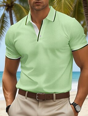Voor heren Wafel Poloshirts Met Textuur Casual Feestdagen Revers Geribbelde polokraag Korte mouw Modieus Basic Effen Knop Zacht Zomer Lente Normale pasvorm Wit Geel Bordeaux Muntgroen Groen khaki