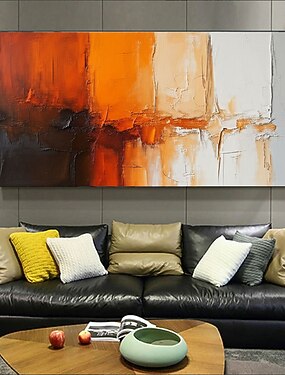 handgemaakt origineel abstract schilderij met terracotta textuur, oranje tint, minimalistische muurdecoratie, heldere muurkunst, interieurkunst, schilderij op canvas