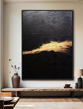 abstract landschap abstracte muurkunst groot zwart-grijs abstract schilderij gouden textuur abstracte kunst huisdecoratie schilderij housewarming cadeau