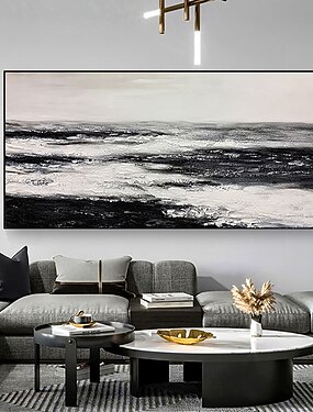 handgemaakt olieverfschilderij canvas kunst aan de muur decoratie modern abstract landschap zeegezicht briljante sofa achtergrond muur voor interieur opgerold frameloos ongerekt schilderij