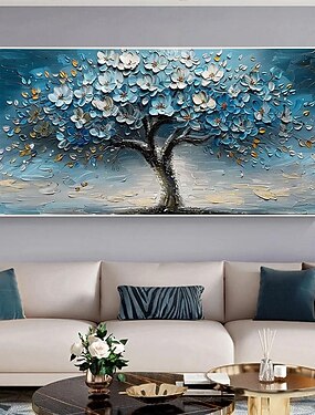 met de hand geschilderd groot origineel bloesemboomolieverfschilderij op canvas aangepaste muurkunstabstracte textuur blauwe bloemkunstmuur decor woonkamermuurdecor ingelijste