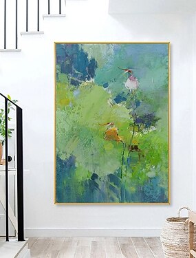 handgemaakt olieverfschilderij canvas muurdecoratie moderne abstracte abstracte lotus groene textuur voor veranda interieur gerold frameloos ongerekt schilderij