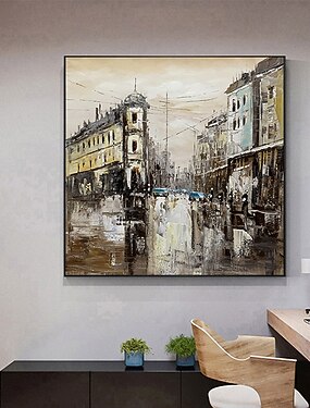 handgemaakte olieverf canvas kunst aan de muur decoratie abstracte architectuur schilderij street view voor home decor gerold frameloze niet-uitgerekt schilderij