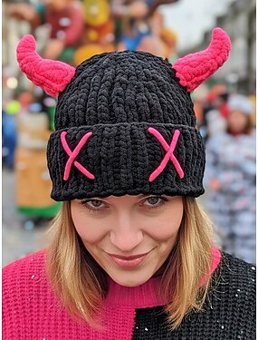Dames Mardi Gras Gebreide Wol Beanie met Hoorns – Beschikbaar in Meerdere Kleuren Perfect voor Carnaval en Maskerade Feesten