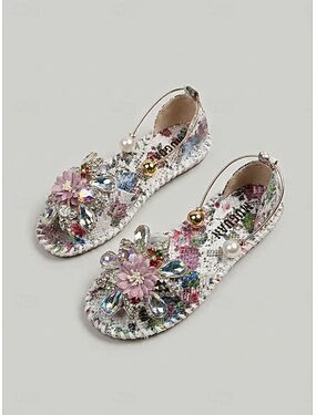 Versierde platte sandalen met bloemenprint voor dames - zomerse vakantie- en avondfeestschoenen voor vrouwen