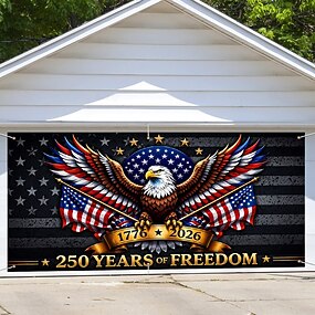 Decoratie voor garagedeur ter ere van het 250-jarig jubileum van de VS, achtergrond met een adelaarfoto van 4 juli, Amerika 1776-2026, banner voor de Amerikaanse Onafhankelijkheidsdag, patriottische decoratie.