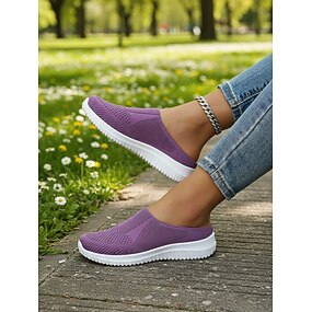 Ademende gebreide instapschoenen voor dames – lichtgewicht, elastische mesh muiltjes voor op reis, dagelijks gebruik, winkelen en wandelen in de buitenlucht.