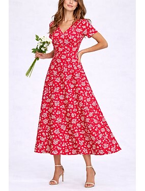 Dames Halflange jurk Boho-jurk Zonnejurk Casual jurk Elegant Bohemen Vakantie Strand Feestdagen Afspraakje Normale pasvorm Bloemig Grafisch Korte mouw V-hals blauw Zwart Rood Zomer Lente