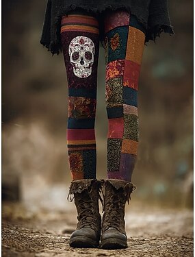 Dames Leggings Vakantie Vintage Etnische Stijl Enkel-Lengte Hoge Taille Grafisch Schedel Monster 3D Print Sneldrogend Ademend Zacht Rekbaar Buiten Thuis Casual Blauw Oranje Groen Khaki Herfst