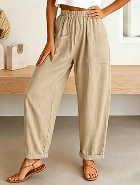Dames Breed Been Cropped broeken Vakantie Basic Chino Volledige lengte Natuurlijk Effen Kleur Effen Zak Comfortabel Ademend Inelastisch Vakantie Formeel Straat blauw Lichtgrijs Abrikoos Wit Zomer