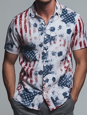 Voor heren Voetbal Amerikaanse vlag Overhemd Overhemd met knopen Korte mouw Mode-casual Streetwear Feestdagen Lente Herfst Strijkijzer 3D-afdrukken shirts met kraag Wit 1 Wit