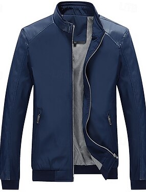 Voor heren Jas van imitatieleer Bikerjack Motorjas Vakantie Dagelijks Winddicht Houd Warm Zak Lente Herfst Effen Modieus Klassiek Opstaand Normaal Zwart Grijs Jacks