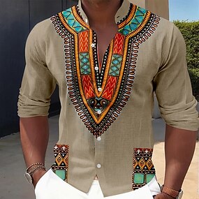 Voor heren Geometrisch Ethiek / Afrikaans Inheemse volkeren Overhemd Overhemd met staande kraag Lange mouw Vintage Retro Casual Vakantie Lente Herfst Mandarijn Kraag Band Kraag Button-omlaag