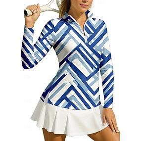 Dames Geometrisch Sportshirt Wandelen poloshirt Tennisshirt Tennistop Lange mouw Vetoketju Bloemig UPF50+ UV-bestendig Hoge Elasticiteit Vochtregelerend Ademend Tennis Golf Augurkbal Opstaand Rits