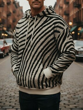 Voor heren Jacquard Trui met capuchon Zwart Wit Marineblauw Khaki Grijs Capuchon Effen Lapwerk Kangoeroe zak Met Textuur Casual Dagelijks Sport & Outdoor Streetwear Stoer Sportkleding Lente & Herfst