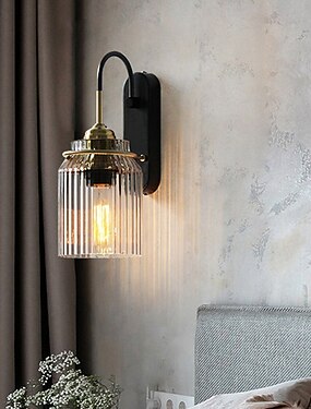 wandlamp, moderne wandlampen, landelijke wandlampen met heldere glazen kap, wandlampen voor woonkamer, slaapkamer, trap, badkamer, gang 110-240v