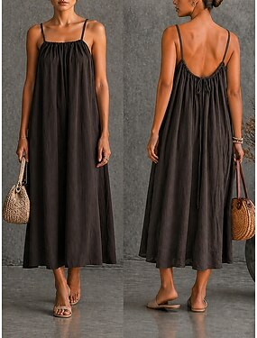 Dames Maxi-jurk Casual jurk Effen Kleur Modieus Streetwear Feest Kantoor Dagelijks Geplooid Mouwloos Strakke ronde hals Jurk Normale pasvorm Zwart Geel Beige Zomer S M L XL XXL