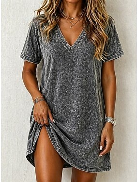 Dames Knielengte jurk Gewassen jurk Casual jurk T shirt jurk Basic Klassiek Dagelijks Vakantie Normale pasvorm Effen Marmeren afdrukken Korte mouw V-hals Grijs Zomer Lente