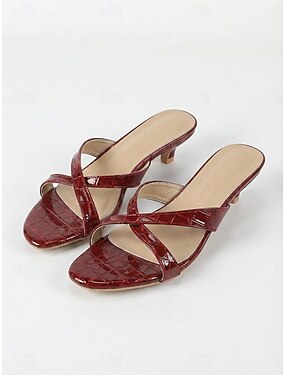 Damessandalen met bordeauxrode krokodillenprint en kittenhak - elegante slippers met gekruiste bandjes voor ontspanning aan het zwembad of een zomerse cruisevakantie. &semi-formele avondevenementen