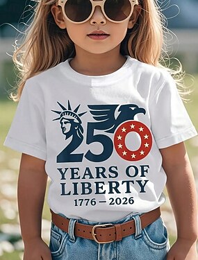 100% katoen Kinderen Voor meisjes Zwart Wit Grafisch Vrijheidsbeeld 250-jarig jubileum Amerikaanse vlag voor kinderen T-shirt Strakke ronde hals Korte mouw Vakantie Sport & Outdoor Dagelijks gebruik