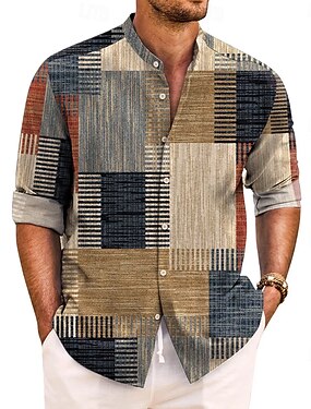 Voor heren Geometrisch Overhemd Overhemd met knopen Overhemd met staande kraag Korte mouw Mode-casual Vakantie Dagelijks Zomer Lente opa kraag Mandarijn Kraag Band Kraag 3D-afdrukken Linnenachtig