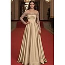Baljurk Strijksleep Tot de grond Galajurken Avondjurken Baljurk Formele kleding heet Glitter & Sprankel 3/4 mouw Schouderafhangend Verloving Huwelijksreceptie Satijn met Pailletten |