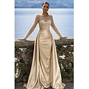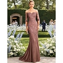 Trompet zeemeermin Tot de grond Avondjurken Elegant Glitter & Sprankel Lange mouw Illusie Hals Carnaval Maskerade Champagne moeder van de bruid jurk Satijn Pailletten met Pareldetails Overrok |