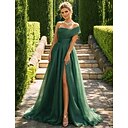 A-lijn Strijksleep Galajurken Avondjurken Baljurk Formele kleding Smaragdgroen Sexy Hoge splitsing Korte mouw Eén-schouder Schoolfeest Bruiloft gast Organza met Ruches Split |