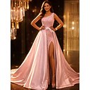 Baljurk Tot de grond Galajurken Avondjurken Baljurk met overrok Formele kleding Glitter & Sprankel Sexy Hoge splitsing Mouwloos Eén-schouder Avond Feest Bruiloft gast Afneembaar Satijn met Strik(ken |