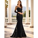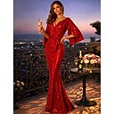 Trompet zeemeermin Tot de grond Galajurken Avondjurken Baljurk Formele kleding Glitter & Sprankel Sexy Lange mouw V-hals Formeel Bruiloft gast Herfst huwelijksreceptie Pailletten met Strik(ken |
