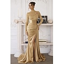 Trompet zeemeermin Strijksleep Over de knie Avondjurken Baljurk met overrok Formele kleding Elegant Zijsplit Zijdeachtig Lange mouw Hoge nek Formeel Satijn Pailletten met Pareldetails Pailletten |