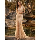 Zeemeermin Avondjurk Sexy Jurk Formele Bruiloft Gast Sweep Borst Train Lange Mouw V Hals Fall Bruiloft Receptie Kant met Split Applicaties Maskerfeest Jurk |