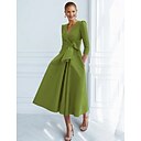 A-lijn Over de knie Cocktailjurken Feestjurken Uitlopende jurk Elegant 3/4 mouw V-hals Tuinfeest Bruiloft Satijn met Strik(ken) |