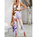 Dames Normaal Jumpsuit Actief Bloemig Mouwloos V-hals Hoge taille Vakantie Dagelijks Normale pasvorm Paars Oranje Zomer |